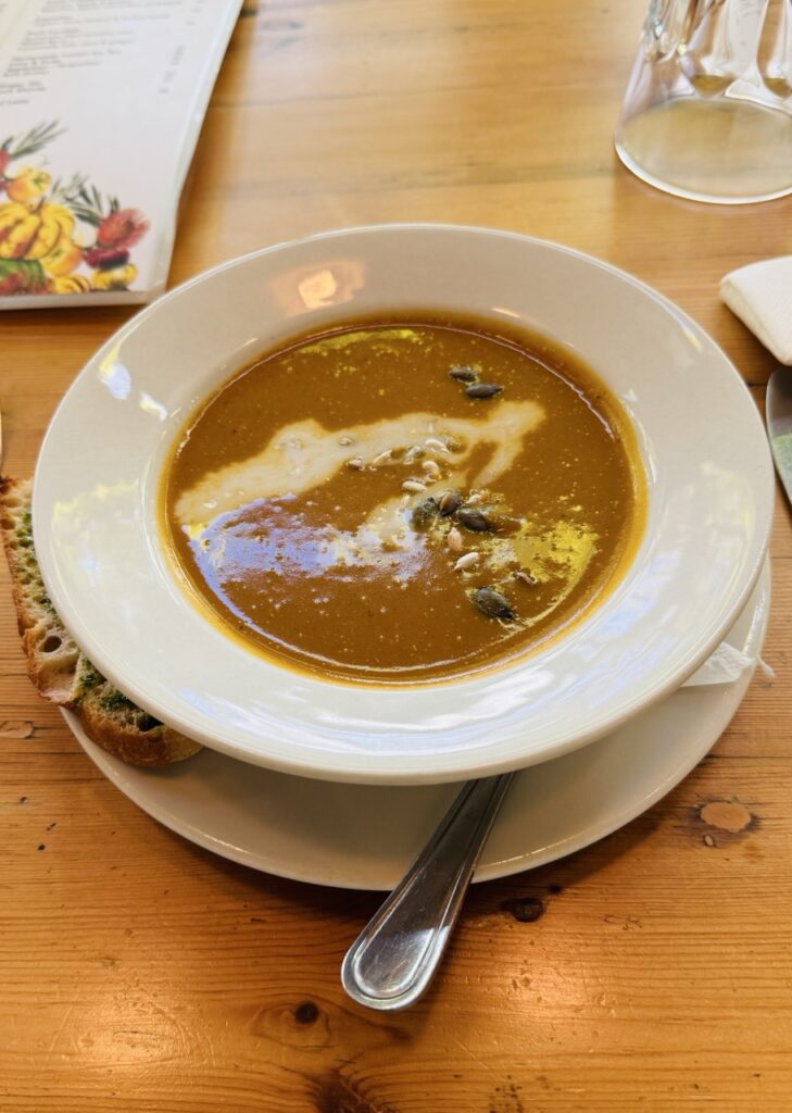 I enjoyed a comforting butternut squash soup, pasta served without goat cheese, and a fragrant curry dish—one I was starting to realize had become Cape Town’s dependable vegan standby. The real surprise, though, came at dessert: a vibrant fruit plate paired with vegan chocolate ice cream that allowed for just the right amount of indulgence.