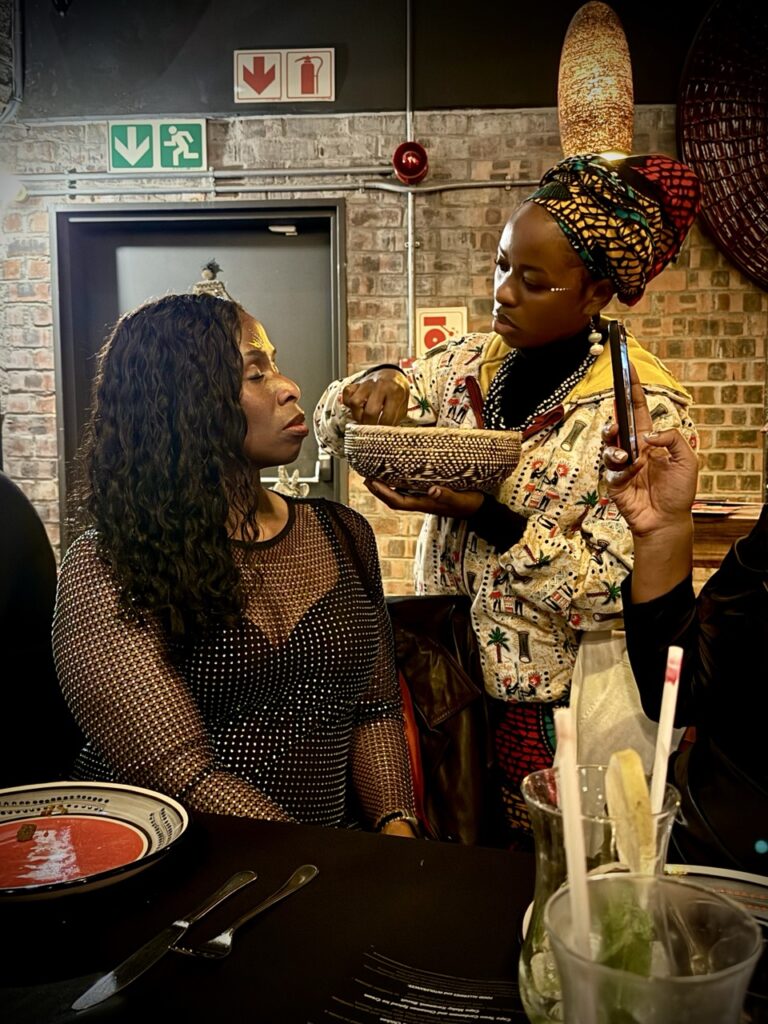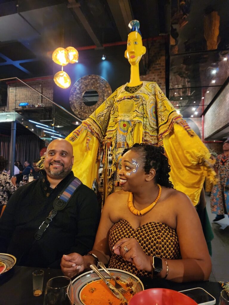 Known for its immersive Pan-African dining, GOLD offers a 14-course tasting menu inspired by cuisines from across the continent—paired with live drumming, singing, dancing, storytelling, and even Malian puppetry. From the moment we arrived, surrounded by vibrant décor, traditional masks, textiles, and staff dressed in cultural attire, it was clear we were in for something unforgettable.