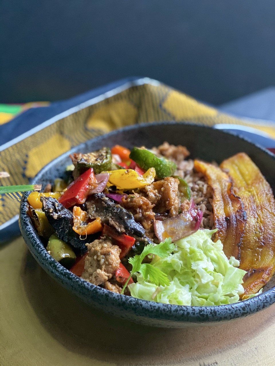 This Jerk-Roasted Portobello Mushrooms & Veggies recipe is a quick, flavor-packed sheet pan meal perfect for busy weekdays but delicious enough for a Sunday dinner or special occasion. Optional vegan chicken makes it even more satisfying.