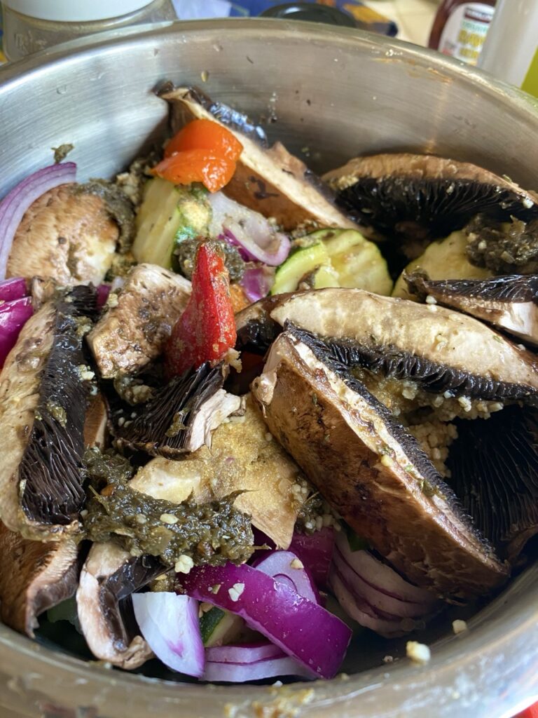 3.         Prep vegetables and Portobellos: