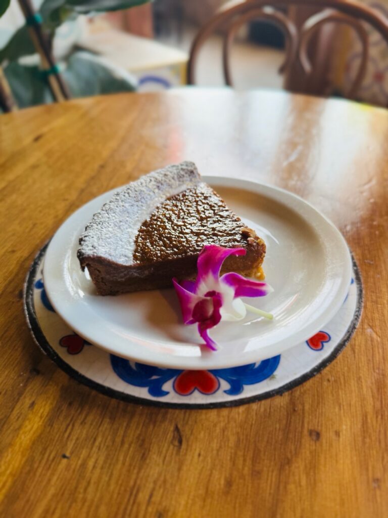 Urth offers several vegan dessert options, including jumbo cookies and a rich chocolate cake. But my go-to? The pumpkin pie—minus the whipped cream. It’s creamy, comforting, and honestly one of the better versions I’ve had.